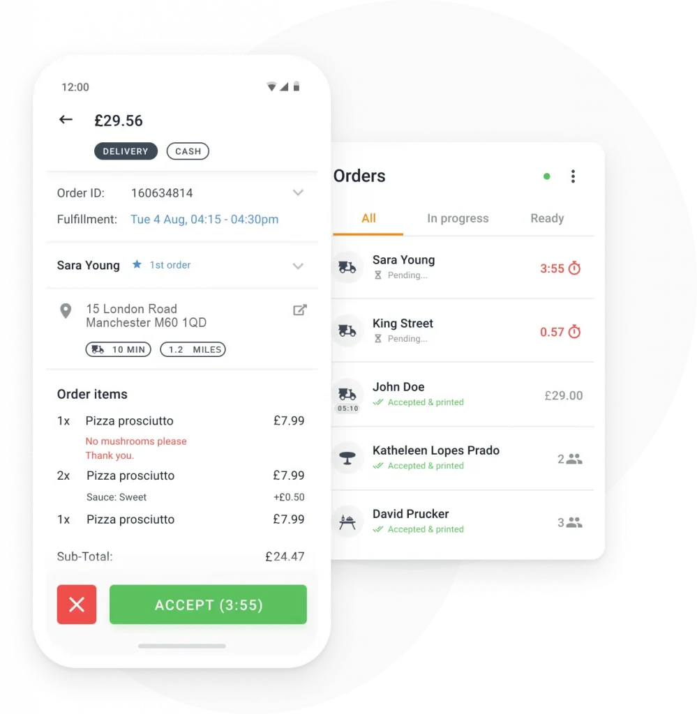 The App allows you to accept reject & cancel orders, set delivery/collection time. You can also make any menu items unavailble in case you ran out.