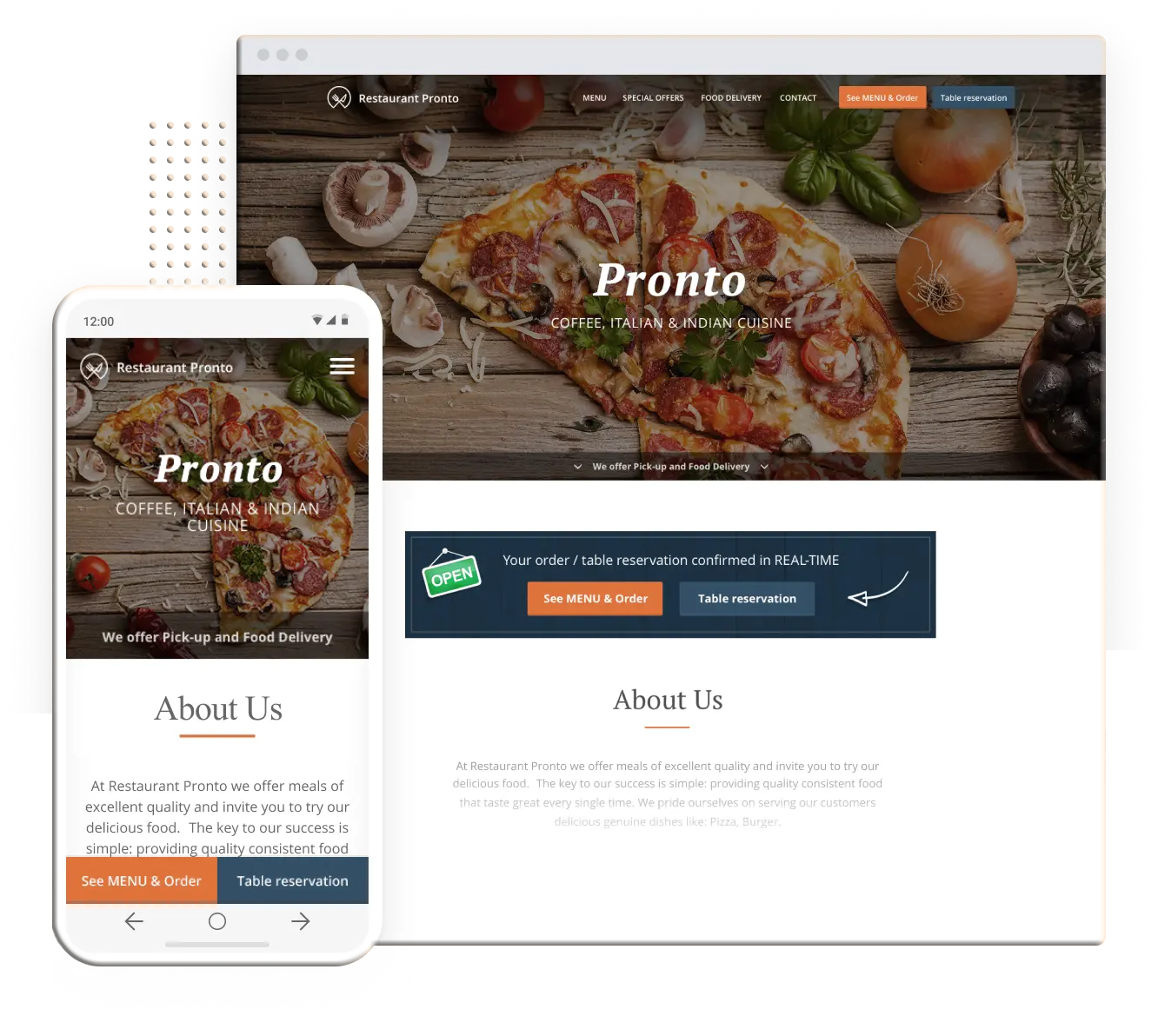 Our Online Food Ordering widget, let your clients order food online, straight from your website that is optimised for small devices (phones & Tablets) as well as large screens (Laptops & PCs)