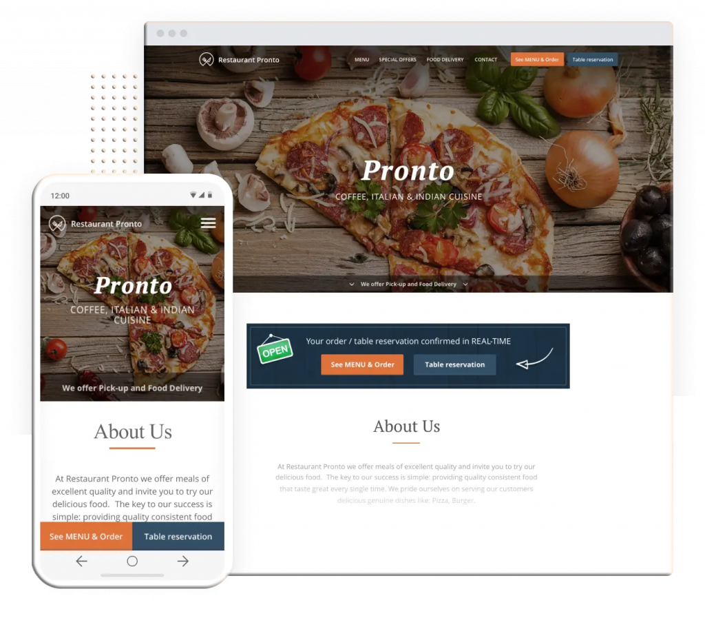 It’s simple: all we need to do is getting access to your website and add the “See MENU & Order” as well as “Table Reservation” buttons on your site.